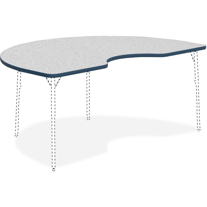 Versatile Activity Tabletop is great for creating collaborative learning environments in classrooms, training rooms, conference rooms and more. Sturdy, kidney-shaped top is 1-1/8" thick. Table edges are cushioned with protective, navy edgebanding. Kidney shape offers a place for the teacher at the table. The Grey Nebula, high-pressure laminate finish offers a smooth, durable worksurface. Activity Table Legs, the four-leg base, adjust in height from 22" to 30" or 17" to 25" in 1" increments and are sold separately.
