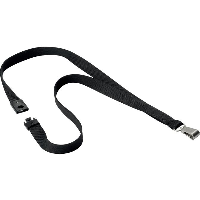 Premium textile lanyard features a silky-soft construction to provide complete comfort all day long. Safety release mechanism automatically separates if caught or snagged on items to prevent injury in hazardous environments. The metal carabiner attaches securely to card holders for enhanced security. Textile lanyard is designed for use with all Durable card holders (sold separately).