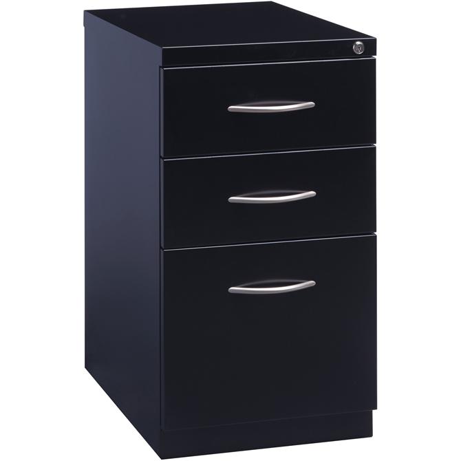 Premium mobile pedestal file features durable construction to withstand intense daily use. Two box drawers include a pencil tray and one divider per drawer to help organize your supplies and belongings. The file drawer accommodates letter-size, hanging file folders with the included hangrails. Secure the contents with the core-removable lock. Premium arch drawer pulls and clean style integrate with most office environments. Precision ball-bearing suspension and full drawer extension deliver optimal performance. Counterweight guards against tipping. Greenguard Gold certified pedestal file meets or exceeds applicable ANSI/BIFMA standards.