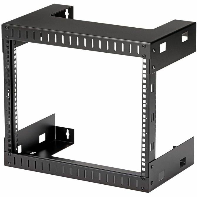 The RK812WALLO 8U Open Frame Wall Mount Equipment Rack (12in Depth) is a high quality, low cost relay rack that is easy to assemble and install into any environment. The rack can be wallmounted or installed as a free standing storage solution. This TAA compliant product adheres to the requirements of the US Federal Trade Agreements Act (TAA), allowing government GSA Schedule purchases. Able to accommodate common networking, audio-video and telecom equipment, the open rack offers a depth of 12in; the wall mounts are positioned 16in apart (center to center), making it suitable for mounting on virtually any wall surface, based on North American wall frame stud spacing standards. This 8U rack can be mounted to the wall in a server room, office, or above a doorway, expanding your workspace and keeping your equipment easily accessible. Backed by a StarTech.com lifetime warranty. ~ More from the Manufacturer