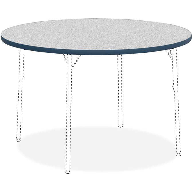 Versatile Activity Tabletop is great for creating collaborative learning environments in classrooms, training rooms, conference rooms and more. Sturdy, round top is 1-1/8" thick. Table edges are cushioned with protective, navy edgebanding. The Grey Nebula, high-pressure laminate finish offers a smooth, durable worksurface. Activity Table Legs, the four-leg base, adjust in height from 22" to 30" or 17" to 25" in 1" increments and are sold separately.