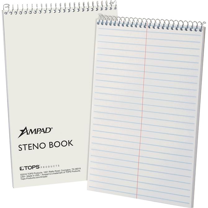 Steno notebook contains 15 lb. green tinted paper that is Gregg-ruled with 11/32" spacings and center ruling for segregating notes. Chipboard in front and back protects your notes and offers convenient writing support. Sturdy cover protects pages and information. Top wire binding allows easy access to pages.