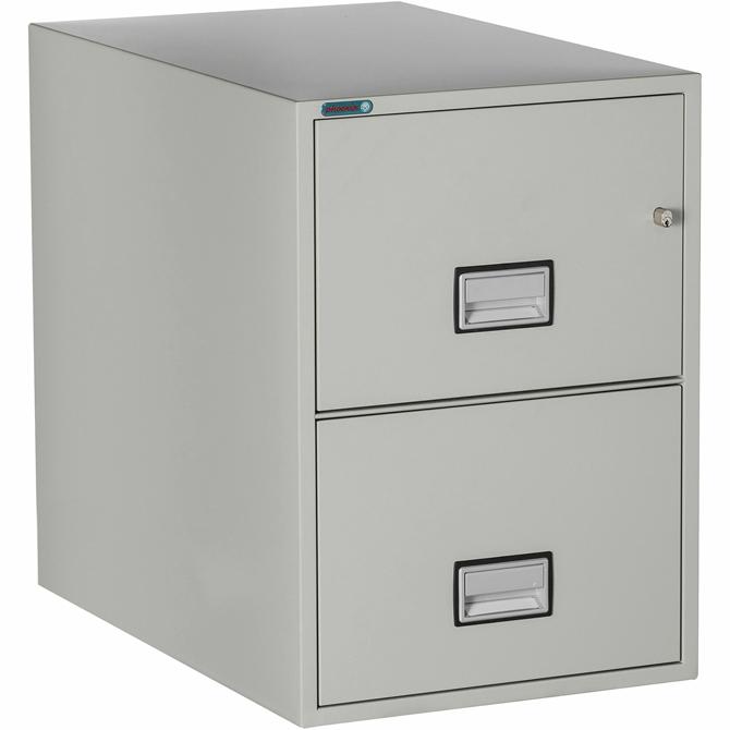 World Class Vertical File provides rugged endurance to withstand tough disasters. Fire-resistant feature outlasts the harshest flames up to 1 hour. Individua drawer insulation prevents closed drawers from fire if one is left open. It also resists explosions up to 2000 degrees Fahrenheit and survives drops up to 30'. Labyrinth sealing system and special gaskets prevent water damage. Vertical file is MTC Grade B rated to protect CDs, DVDs, USBs and memory sticks. Easily access files using recessed drawer pull. Key-operated plunger locks drawers for enhanced privacy. Two drawers store and organize your legal-size documents for convenient access.