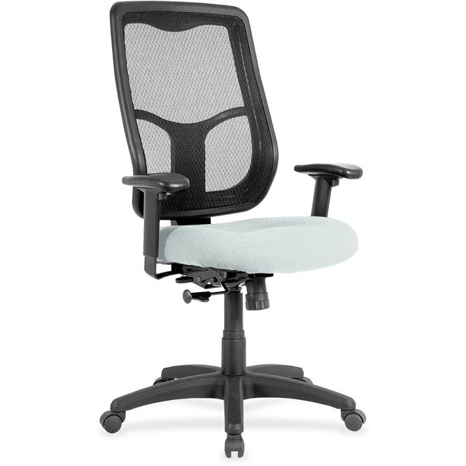 Apollo High Back Chair with Ratchet Back combines value, comfort, adjustability and quality to give you a comfortable seating option with a breathable, mesh back. Tilt tension control with tilt lock allows you to adjust the recline rate based on your weight. Synchro-tilt allows the back to recline in a preset ratio to the seat. Seat-height adjustment allows you to set the height to the desired position relative to the floor. Dillon vinyl-upholstered, waterfall seat slopes to reduce pressure on the back of your knees for extra comfort through prolonged periods. Arms are both width-adjustable and height-adjustable for proper ergonomic positioning. 2.8" ratchet-back, height adjustment allows the backrest to easily adjust up or down relative to the seat for personalized lumbar region support and comfort. Chair is Greenguard certified to have low chemical emissions.