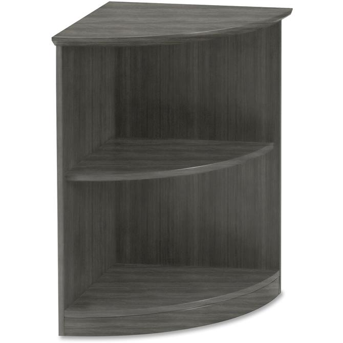Bookshelf is part of the Mayline Medina Series with contemporary style and elegant functionality. Clean lines, curved shapes and floating worksurfaces reflect Italian design influences. Gray Steel laminate finish ensures a beautiful collaboration with other Mayline furniture and complements most any decor. Laminate is stain-resistant, water-resistant and abrasion-resistant. Durable, quarter-round bookcase offers two 1" thick open shelves for convenient storage. Upper shelf adjusts in 1" increments so you can customize your space. Each shelf holds up to 25 lb. evenly distributed.