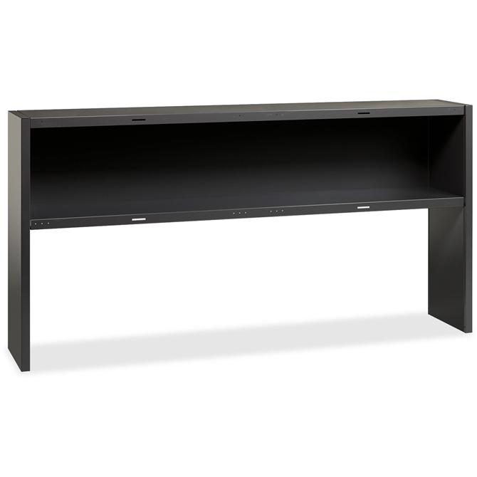 Stack-on hutch adds overhead storage for 72" wide desks and credenzas in the Lorell Commercial Steel Desk Series with commercial-quality performance and components. Use the two wire-management grommets and included hardware to mount it onto a desk or credenza of the same size. Stack-on hutch is a great solution for small and large work spaces that need to store materials above the worksurface but still within reach. Built-in cord management provides easy access to power and data while minimizing clutter. Steel construction withstands heavy activity and relocation. Flipper doors are sold separately. Hutch is not intended to be used freestanding.