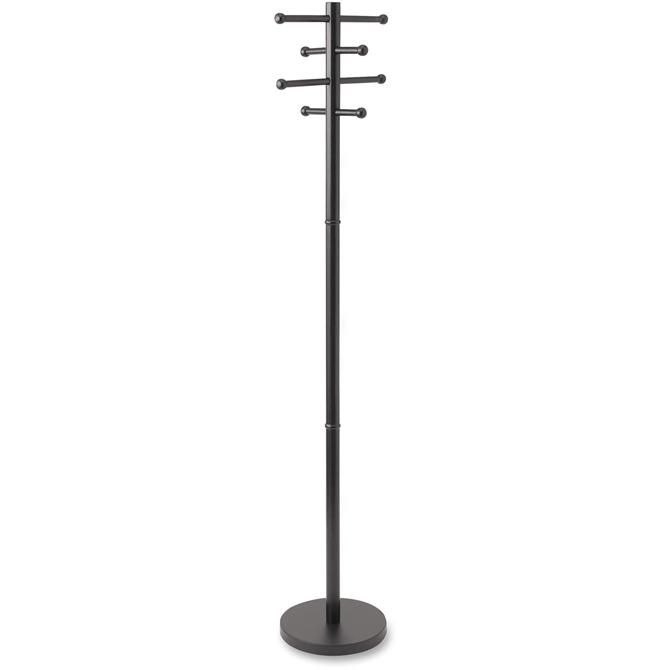 Advantus Wood Coat Tree - 8 Pegs - 68" Height - for Garment, Hat - Wood - Black - 1 Each
