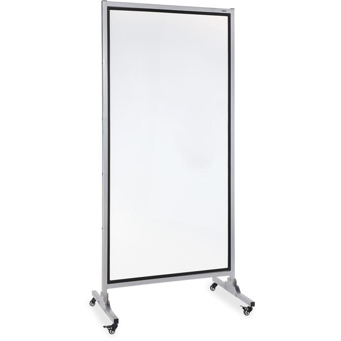 Whiteboard easel offers a large, double-sided whiteboard that can be used as a dry-erase surface and magnetic bulletin board. Write or post on both sides. Use the four casters to turn or move the easel for easy access and viewing. Easel is made with two dry-erase steel sheets (35-2/5" x 70-6/7") and a cardboard insert. Frame is made of aluminum.