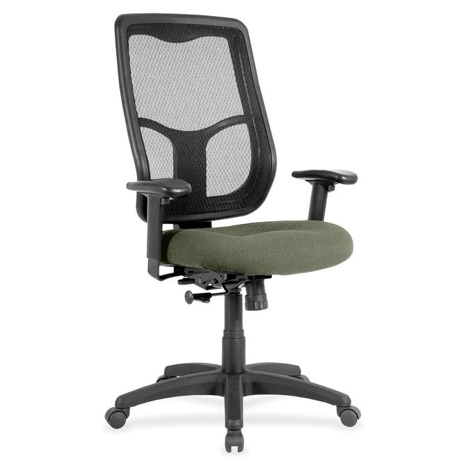 Apollo High Back Chair with Ratchet Back combines value, comfort, adjustability and quality to give you a comfortable seating option with a breathable, mesh back. Tilt tension control with tilt lock allows you to adjust the recline rate based on your weight. Synchro-tilt allows the back to recline in a preset ratio to the seat. Seat-height adjustment allows you to set the height to the desired position relative to the floor. Fabric-upholstered, waterfall seat slopes to reduce pressure on the back of your knees for extra comfort through prolonged periods. Arms are both width-adjustable and height-adjustable for proper ergonomic positioning. 2.8" ratchet-back, height adjustment allows the backrest to easily adjust up or down relative to the seat for personalized lumbar region support and comfort. Chair is Greenguard certified to have low chemical emissions.