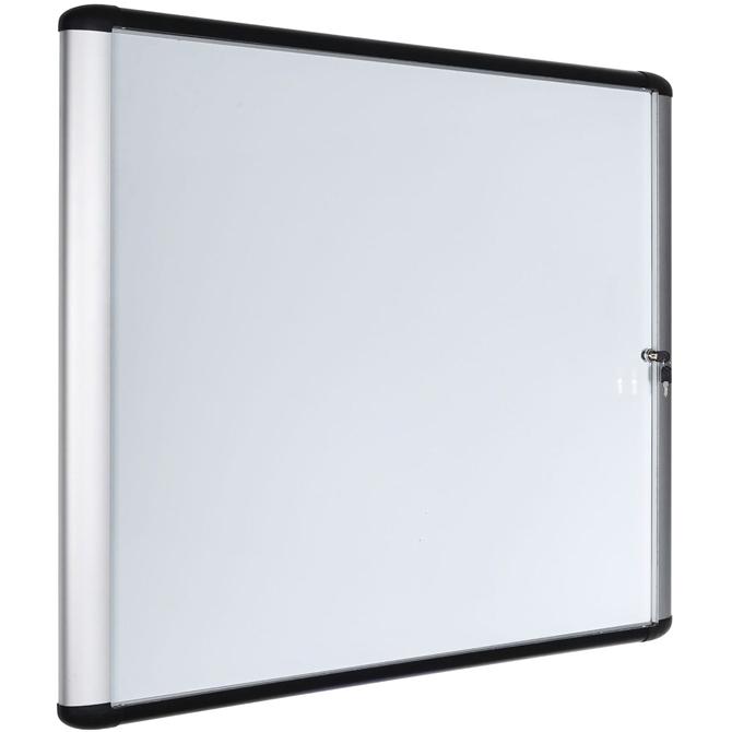 Great for any office or business setting, this enclosed dry-erase board features a Magnetic Porcelain Platinum Pure White Surface that resists scratching and ghosting. Clear acrylic swinging door locks to protect your message from tampering. Erasable surface allows you to easily change your message whenever you like. Magnetic feature makes posting pre-printed messages just as simple. The contemporary sleek frame is made of anodized aluminum. Enclosed board includes a wall-fastening kit. Internal depth is 1-3/4".