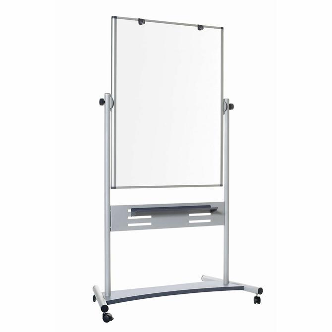 Dual-sided, dry-erase board features easy-clean, magnetic surfaces that wipe down cleanly to maintain its bright surface through every use. Reversible design allows you to simply rotate the board to instantly double your writing space. Easy-glide, locking casters roll smoothly across floors for effortless mobility from room to room. Adjustable tray can be positioned in various locations to keep your writing utensils and erasers within easy reach. Universal pad retainer works with all pads (sold separately). Dry-erase board is perfect for classrooms, presentations, training environments and more.