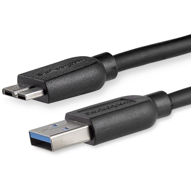 Does your regular USB 3.0 cable lift or push against your external hard drive causing it to move around on your desk Are you forced to arrange your desk according to how your cable decides to bend and rest The USB3AUB2MS features a slim USB wire construction that makes it easier to install your USB 3.0 devices and enables you to place them as needed throughout your workspace. Plus, the thin Micro USB connector molding makes this a great cable for mobile USB 3.0 devices too - it lets you plug into your device without having to take it out of its case for every charge and sync. Organize your desk and your office to match your needs. This durable, lightweight cable is approximately half the thickness of a regular USB 3.0 cable giving you the freedom to place your devices as needed and with minimal clutter. The flexible, thin cable also reduces strain on the connection and prevents damage to the USB 3.0 port on your device. Provide full charging power, with no loss of charge time, even at distances of up to 6 feet (2 meters) away from your charger. As well as being ideal for connecting to your desktop devices, this cable provides the perfect solution for charging and syncing your USB 3.0 Micro B-equipped phones and tablets. The long charge cable overcomes distance restrictions and lets you stay connected even while you're taking notes in a boardroom, catching up on emails in a hotel room, or reading in a coffee shop. Stop removing the case from your phone or tablet every time you charge or sync your device. The cable offers a thin Micro USB connector molding that plugs into your device even while it's inside a protective case. This Micro USB 3.0 cable is backed by StarTech.com's Lifetime warranty for guaranteed reliability. More from the Manufacturer