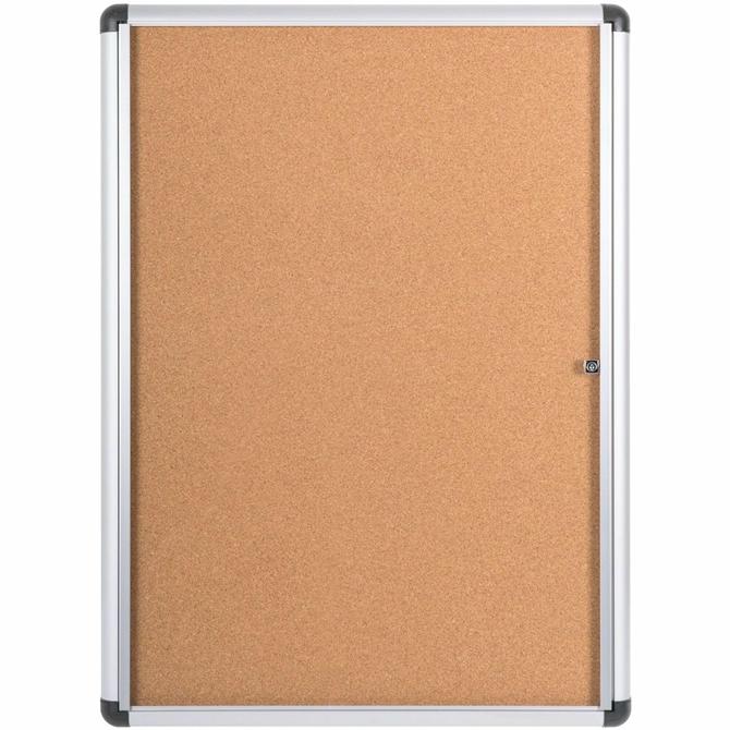 SlimLine Enclosed Bulletin Board with a single door hinged at the top showcases your information without creating any obtrusion into walking spaces. It is easy to mount horizontally with included wall-fastening kit. Swing door locks secure menus, schedules, timetables and other vital postings. Door is made of strong acrylic for easy visibility. Internal depth is 7/10" for 3D displays. Board enclosure holds up to 15 letter-size sheets. Self-healing cork allows easy posting and will not show pinholes for long-lasting use. Frame is made of aluminum. Board comes with two keys.