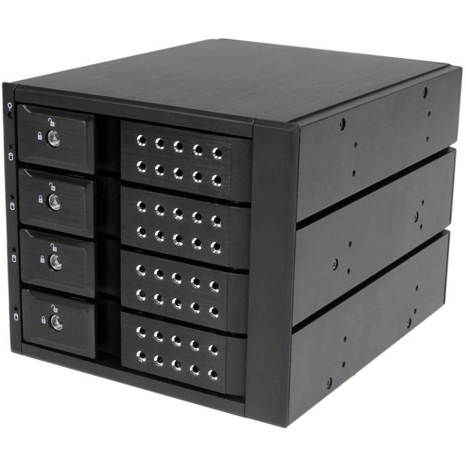The HSB4SATSASBA Removable 4-drive Backplane makes inserting and removing drives fast and easy, by turning three 5.25" bays into a hot-swappable interface for up to four 3.5" SATA or SAS hard drives (HDD). For added versatility, the hot swap bay can interface with SATA I/II/III and SAS I/II hard drives -- an ideal solution for enterprise system applications. For a quick and secure method of installing and removing drives, the backplane features ejection levers and a key-lock design. To help prevent drive failure, the bay provides drive cooling with a built-in fan and excellent heat dissipation with a vented aluminum enclosure. The HSB4SATSASBA is backed by a StarTech.com 2-year warranty and free lifetime technical support. More from the Manufacturer