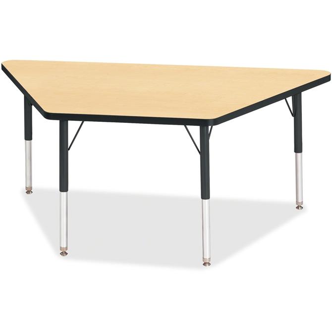 Trapezoid-shaped activity table is perfect for elementary students. Multiple trapezoid tables can be conveniently arranged in an assortment of configurations to accommodate any space. Durable laminate features an easy-to-clean surface. TRUEdge is permanently thermo-fused to the edges to prevent chipping. Extra-safe, dual-screw steel legs allow you to easily adjust the height of the table. Powder-coated, adjustable legs can be repositioned in 1" increments to provide maximum comfort for children. Leg guides reduce squeaks, prevent snags and eliminate rusting.