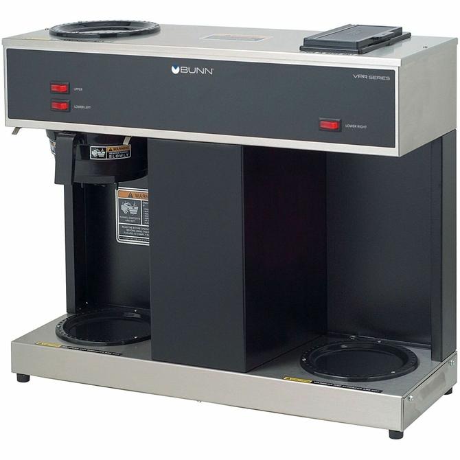 Three separately controlled, porcelain warmers each hold 1/2 gallon of coffee at a just-right temperature. Aeration system constantly draws fresh air into nonpressurized tank to keep brewing water fresh. Brewer brews 60 cups per hour. Brewer includes plastic pitcher and 50 filters. Stainless steel hood, base and other working parts clean with a wipe of a damp cloth. Stylish black accent complements every decor. Decanters are sold separately. Brewer does not require plumbing to operate. UL listed for commercial and institutional use.