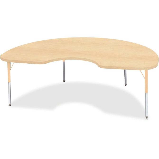 Let children safely work on their favorite arts and crafts on this kidney-shaped activity table. Laminate is durable and features an easy-to-clean surface. TRUEdge is permanently thermo-fused to the edges to prevent chipping. Extra-safe, dual-screw steel legs allow you to easily adjust the height of the table. Powder-coated, adjustable legs can be repositioned in 1" increments to provide maximum comfort for children. Leg guides reduce squeaks, prevent snags and eliminate rusting.