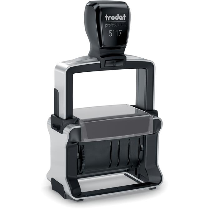Professional date stamp is designed to keep pace with an active office. Heavy-duty dater imprints the date after one of 12 popular phrases: ANSWERED, BACKORDERED, CANCELLED, BILLED, RECEIVED, EMAILED, CHECKED, DELIVERED, ENTERED, PAID, SHIPPED and FAXED. Four bands produce 10 years of dates. Date band cover ensures your fingers remain clean. Impression size is 3/8" x 2-1/4". Stamp delivers 10,000 impressions. The frame is made of steel.