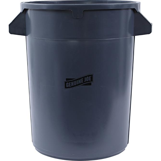 Heavy-duty Trash Container is designed for many purposes from general refuse to biohazard waste. Side handles make them easy to move. Durable drag rings are molded into base. Air venting channels are molded into the side wall for easy bag removal. Container is made of strong, long-lasting plastic that is recyclable.