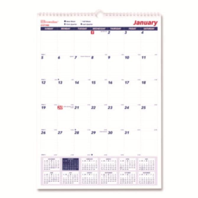 Twin-Wirebound Wall Calendar, One Month per Page, 12 x 17, White/Blue Sheets, 12-Month (Jan to Dec): 2026