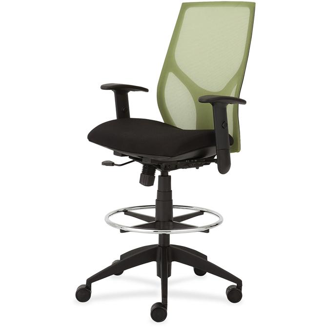 Vault Mid-back Stool goes beyond the expected with features that let you personalize your comfort. Uncommon for a mesh back design, ratchet back-height adjustment lets you raise or lower the backrest from 23" to 25-1/2" for the greatest comfort. High-quality, woven tension mesh in green conforms to your back, following every move with support, including the lumbar region. Seat slider adjusts the seat depth from 16" to 18-1/2" so you are just where you need to be. T-shaped arms adjust in height by 3-1/2" with the push of a button. Other functions include upright tilt lock, 3:1 back-to-seat tilt ratio, center knob tension adjustment, pneumatic seat-height adjustment from 23" to 31" for use with worksurfaces up to 36" high and 360-degree swivel. High-resilient, molded foam seat features a waterfall seat front to promote circulation. 20" wide seat is upholstered in Onyx fabric. Durable, black nylon base with five casters offers long, trouble-free service. Weight capacity is 300 lb.