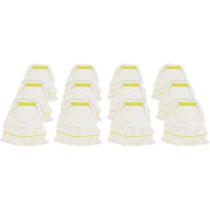 Genuine Joe Narrow Band Small Mophead - Rayon, Cotton - White - 12 / Carton