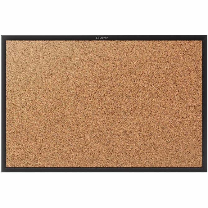 Quartet Classic Series Bulletin Board - 24" Board Height x 36" Board Width - Brown Natural Cork Surface - Self-healing, Durable, Sturdy - Black Aluminum Frame - 1 Each