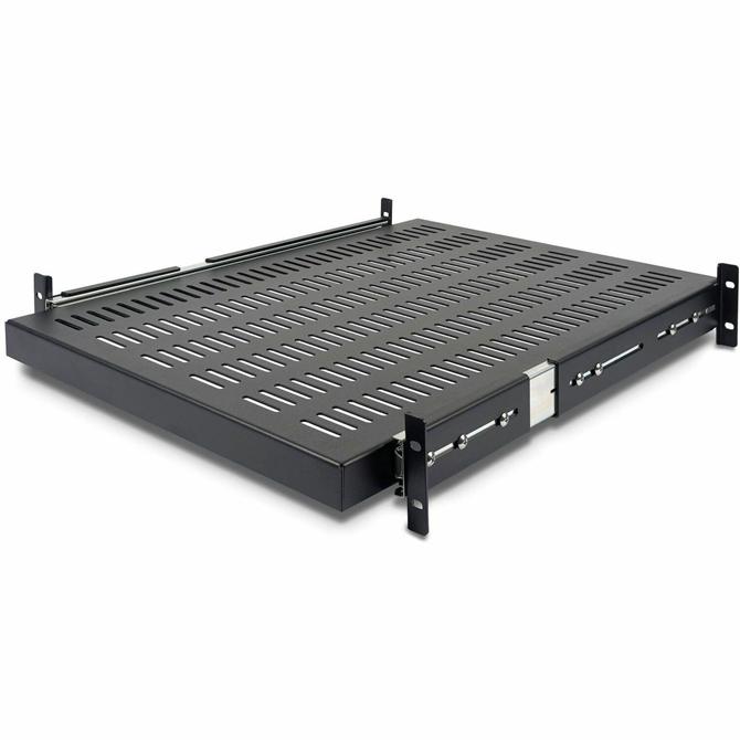 Increase peripheral and equipment accessibility with this vented sliding cabinet shelf. The UNISLDSHF19 19in Vented Adjustable Mounting Depth Sliding Server Rack Cabinet Shelf offers a simple way to install non rack mountable equipment into a server cabinet or open server rack. This TAA compliant product adheres to the requirements of the US Federal Trade Agreements Act (TAA), allowing government GSA Schedule purchases.Offering a weight capacity of up to 50 lbs (22.7 kg), the sliding rack shelf features a ventilated, cold-rolled steel shelf on two locking adjustable rails which allow the shelf to be installed into cabinets or racks with mounting depths from 20in (510mm) to 30in (744mm). The locking feature locks the shelf 3/4 of the way out, preventing the shelf from accidentally falling out of the rack or sliding back in before maintenance is complete.Backed by a StarTech.com lifetime warranty. More from the Manufacturer
