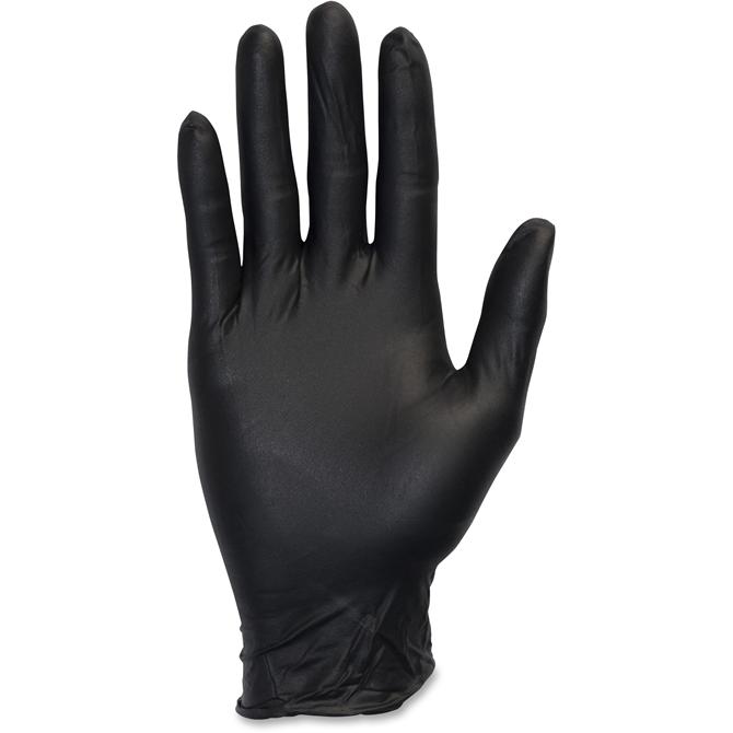 Medical-grade nitrile examination gloves with no powder are the perfect compromise between latex and vinyl. The nitrile is made from an allergy-safe compound that feels a lot like latex, but it's much stronger and more comfortable to wear. Single-use gloves are not made with natural rubber latex so they are 100 percent latex-free. Nitrile is perfect for demanding applications, especially cleaning and dishwashing. These powder-free gloves go through an extra process of chlorinating the gloves, making it easier to take the gloves on or off. The 3.3 mil thick rolled cuff also helps you pull them on and off and helps prevent liquid from dripping onto your arms or sleeves. Palm thickness is 4.25 mil, and the finger thickness is 5.3 mil. Ambidextrous gloves in size large are textured for a better grip and chemical-resistant for durability.
