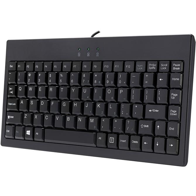Mini keyboard featuring 87 keysThe mini size keyboard is designed with 87 keys, and is equipped with an embedded numeric keypad, featuring a Num Lock, Scroll Lock and Caps Lock LED display.Less than 12” wide for space savingThe mini size keyboard is less than 12” wide, and is an impressive space saver for desktops in homes or offices. It is ideal for use in POS, kiosks, warehouses, manufacturing environments, or in any small working area. Bigger is BetterThe EasyTouch 110 features a larger print on each key to enhance visibility, accuracy, and productivity. This also aids in faster typing and supports those with accessibility needs.Membrane keyboard for fast and quiet typing The membrane key switch features more than a five million lifecycle, and is designed with a silicone rubber material, which can reduce noise when typing, offering a faster and quieter typing experience.