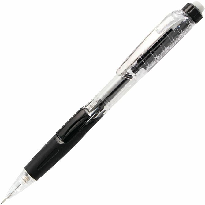 Quick-click side button advances lead without interrupting your writing. Mistakes are no match for the larger than ordinary and long lasting twist-up eraser. Clear barrels with colour accents for a stylish twist on pencils Extended comfort grip perfect no matter how you hold your pencil Durable metal clip withstands repeated use No smudges, no paper tears and no ghosts with the twist-up eraser Pre-loaded with Pentel Ain HB lead; never needs sharpening, is super strong and produces a clear dark line Available in 0.5mm lead size Part of Pentel's exclusive Recycology™ line of recycled products. Over 50% of the materials used to create these products were recycled materials