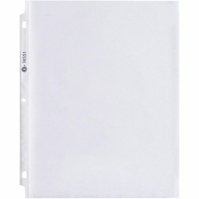 Durable, top-loading sheet protectors hold letter-size inserts without punching. Printed materials do not stick or lift off this specially formulated polypropylene material. Design features a reinforced strip at binding edge and three-hole punched sides. Die-cut corners on ring side allow standard-weight pages to turn freely. Oversized ring binders and indexes are sold separately.