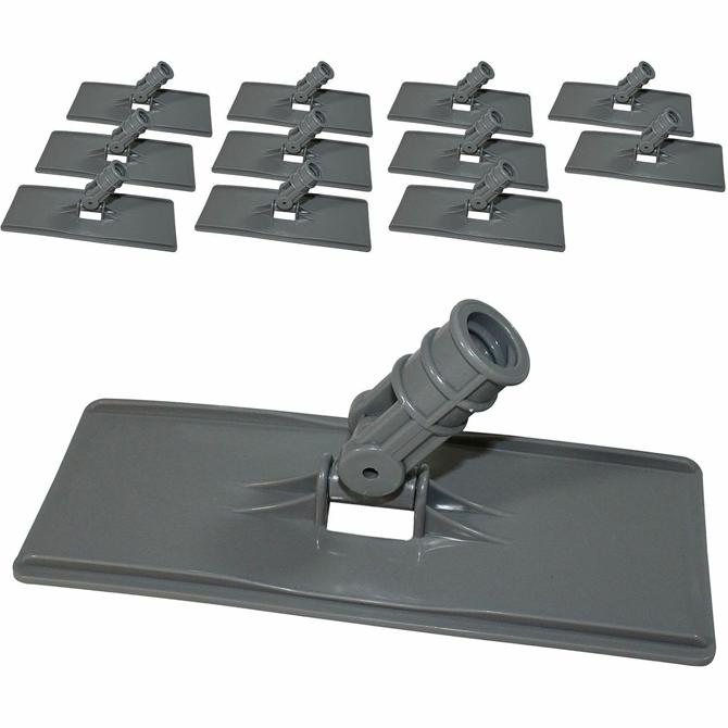 Pad holder features built-in teeth on the base to accept 4-1/2" x 10" Genuine Joe cleaning pads (sold separately). Design permits swivel action in all directions so it is excellent for scrubbing hard-to-reach areas. The threaded socket accepts a 15/16" diameter tapered or threaded handle. Built-in teeth allow quick, easy pad replacement. Pad holder is made of durable plastic.