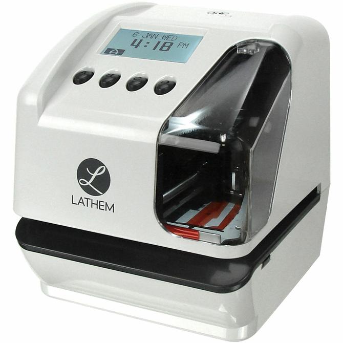 Electronic time stamp features two-line printing and fully customizable text messages to support any document stamping requirement. Configure up to four different print sets and choose which one to print on the fly using the push buttons on the case. Customize the date and time including 4-digit years, 24-hour or 1-12 AM/PM, regular minutes, 1/10 of an hour and even seconds to fit your exact needs. For unique document identification, a programmable 8-digit number can be appended to any print set and configured to advance and repeat based on your requirements. All print formats and custom text messages can be configured online and programmed to the unit using a standard USB flash drive eliminating complex button setup. Heavy-duty print mechanism supports up to half a million imprints for long-lasting performance. Key-locking case and programmable passcode provide tamper-resistant security.