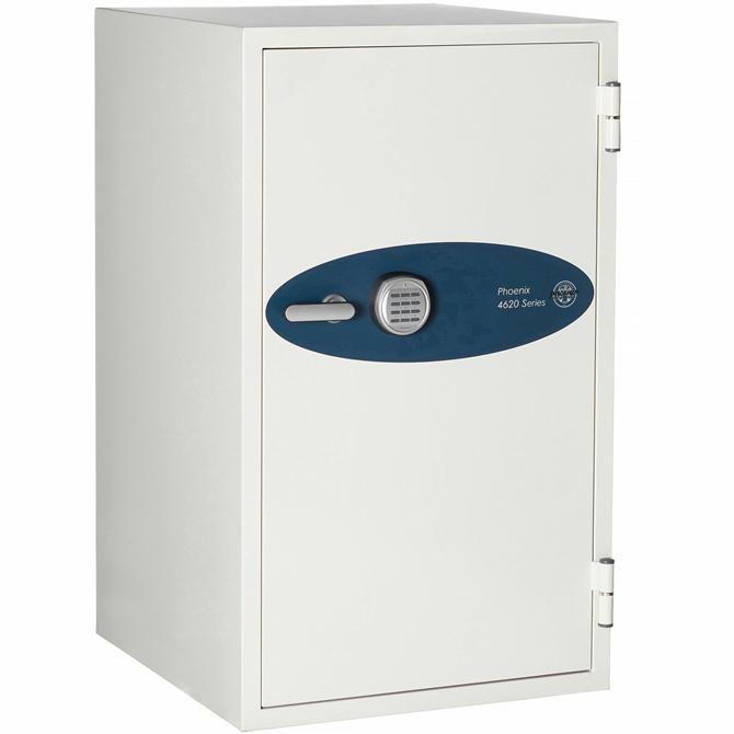 Securely store your media in this fire-resistant, impact-resistant, 4620 Series Data Safe. It is Class-125 Data Protection certified to protect computer media up to 2 hours in a fire ranging from 1700 degrees to 1859 degrees Fahrenheit. Safe is explosion-tested and designed to withstand temperature blasts up to 2000 degrees Fahrenheit. Double-door construction and internal seals prevent water damage from fire hoses and sprinklers. Seals and fireproofing insulation withstand typical amounts of debris that fall during a fire for optimal protection. Combination lock makes it easy to unlock and access your data while providing security and protection from theft. Personalize your combination for convenient access. Storage space features two shelves and three drawers to hold LTOs in cases, DLT tapes, CDs in cases, 8mm cartridges and 4mm cartridges.