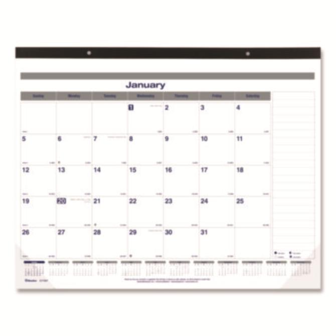 Bears the Carbon Neutral Seal, which means CO2 emissions associated with the production of this product were reduced to Net Zero. Features a contemporary design with one month per sheet, one block per day, large notes section and a yearly calendar at the bottom of each spread. Top-bound, reinforced chipboard backer and clear vinyl corners. Dated: Yes; Academic Year: No; Calendar Format: Monthly; Calendar Spread Format: One Month per Page.