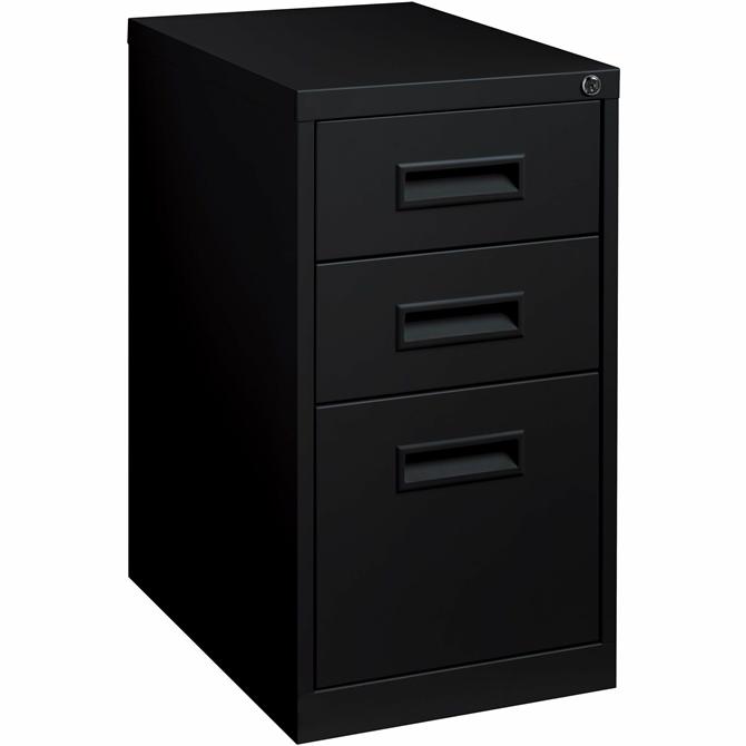 Mobile pedestal offers a box/box/file drawer configuration for plenty of space for filing and supplies. Factory-installed, core-removable lock secures all drawers. Steel ball-bearing, drawer suspension delivers smooth drawer access to the file drawer. File drawer accommodates letter-size hanging folders with tabs. Drawer fronts have color-matched, recessed handles. Casters are hidden from view and move the pedestal easily when necessary. Pedestal is made of steel and offers a 22" depth to slide easily into your cubicle or other office configuration. Mobile pedestal file meets or exceeds applicable ANSI/BIFMA standards.