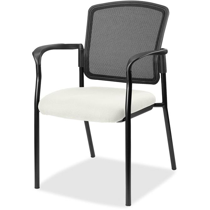 Inviting guest chair features a breathable mesh back and cushioned seat upholstered in Dillon Vinyl for comfortable seating in your waiting room or office. Antimicrobial vinyl seat protects the upholstery from germs and prolong its life. Chair is stackable up to four high for convenient, short-term or long-term storage. Black steel frame is powder-coated for durability. Weight capacity is 275 lb. The 3.5" thick seat measures 18.1" wide x 18.9" deep x 18.9" high. Back size 17.9" wide x 2" thick x 16.9" high. Chair is Greenguard compliant.