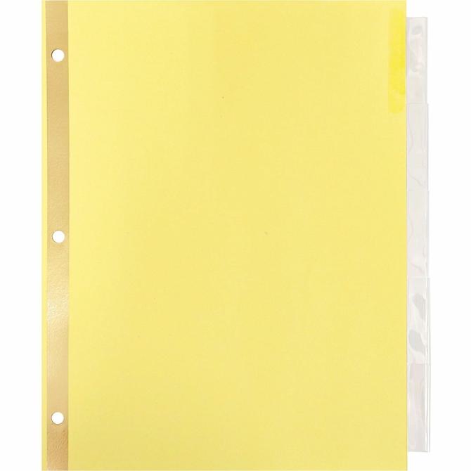 Insertable tab indexes are reinforced on both sides at the binding edge and have three holes along that edge for use in standard-size binders. Letter-size, buff-colored divider is made of 32 lb. stock. Gold-colored, Mylar reinforcement prevents tear-out. Tabs are clear for easy viewing. Tab indexes include blank white inserts that are compatible with laser and inkjet printers.