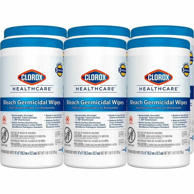 Clorox Healthcare Bleach Germicidal Wipes - For Multipurpose - Ready-To-Use - 5" Length x 6" Width - Recommended For: Germs Remover, Bacteria Remover, Virus Remover, Spore Remover, Fungi Remover, Mildew Remover, Mold Remover, Fungi Remover - Disinfectant,