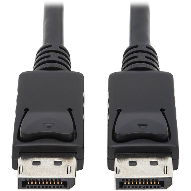 DisplayPort cable with latches offers a high-quality, digital display interface standard for computer and display monitors, or computers and home theater systems. Advanced design sends both video and audio signals for seamless operation. Molded strain relief prevents damage at the vulnerable points for error-free data transmission. DisplayPort cable supports a maximum bandwidth of 10.8Gbps, as well as DPCP (DisplayPort Content Protection), HDCP, and Ultra High Definition (UHD) 4K x 2K video resolutions up to 3840 x 2160.