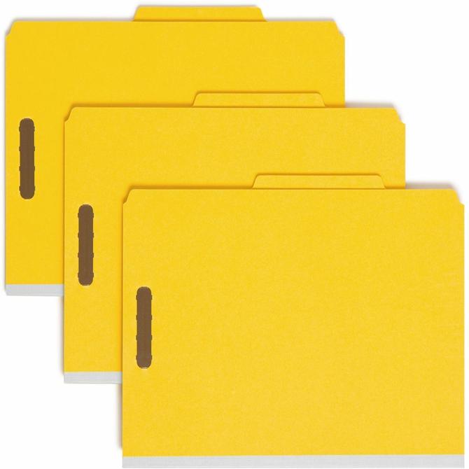 Smead 2/5 Tab Cut Letter Recycled Classification Folder - 8 1/2" x 11" - 2" Expansion - 2 x 2K Fastener(s) - 2" Fastener Capacity - Top Tab Location - Right of Center Tab Position - 2 Divider(s) - 25 pt. - Yellow - Heavyweight, Sturdy, Eco-friendly - 100%