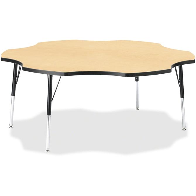 This six-leaf activity table provides the perfect seating arrangement for up to six adults. Durable laminate features an easy-to-clean surface. TRUEdge is permanently thermo-fused to the edges to prevent chipping. Extra-safe, dual-screw steel legs allow you to easily adjust the height of the table. Powder-coated, adjustable legs can be repositioned in 1" increments to provide maximum comfort. Leg guides reduce squeaks, prevent snags and eliminate rusting.