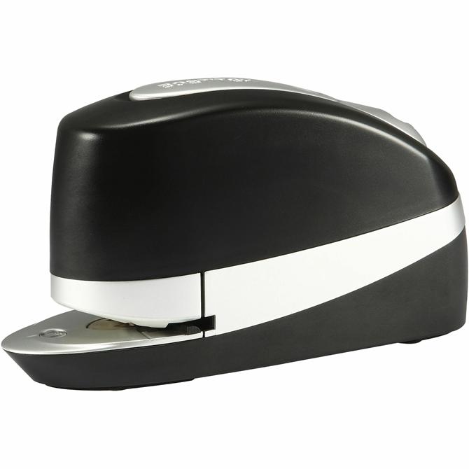 Impulse 20 Executive Electric Stapler features fast, reliable electric stapling. Impulse Drive technology allows stapling in just a fraction of a second and features No-Jam technology to prevent staple jams. Extra-wide paper lead-in and adjustable paper stop deliver consistent stapling at 45-degree or 90-degree angles for easier repetitive stapling. Refill alert light indicates when staples are needed. The FastLoad push-button, staple reloading system makes it simple. Staple storage compartment conveniently keeps extra staples on the unit for immediate refill. Push-style staple remover is removable from unit for easy access. Perfect for work, the home office or school, this electric stapler uses standard staples to fasten 20 sheets of paper at a time. Full-strip staple capacity accommodates 210 staples.