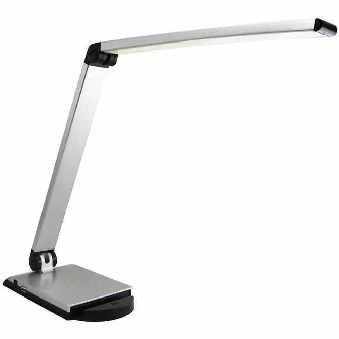 Versatile task light focuses the right amount of light just where you need it and offers a smart device slot and USB charging port (at rear of lamp base) to keep up with your fast-paced schedule. Shade bends up to 180 degrees. The lower hinge can bend forward. Light is generated by 8-watt SMD LED module that is irreplaceable. Dimming switch offers three levels of light as well as an on/off function. LED Task Light is made of aluminum and plastic. It includes a DC adapter and a power cord almost 6' long. Lamp is for indoor use only.
