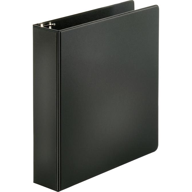 Basic round-ring binder features two triggers on the ring mechanism that provide easy access to your documents. Back-mounted metal rings allow pages to lie flat. 2" capacity holds up to 475 sheets. Clear pockets inside front and back covers offer extra document storage with a 30-sheet capacity for each pocket. Design also features a sturdy chipboard core and exposed rivets. Three-ring binder is made of polypropylene.