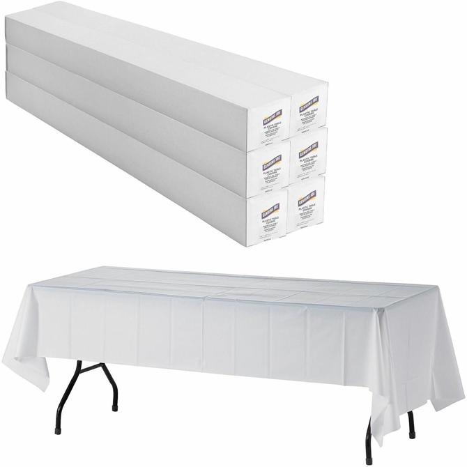 Genuine Joe Banquet-Size Plastic Tablecover - 300 ft Length x 40" Width - Plastic - White - 6 / Carton