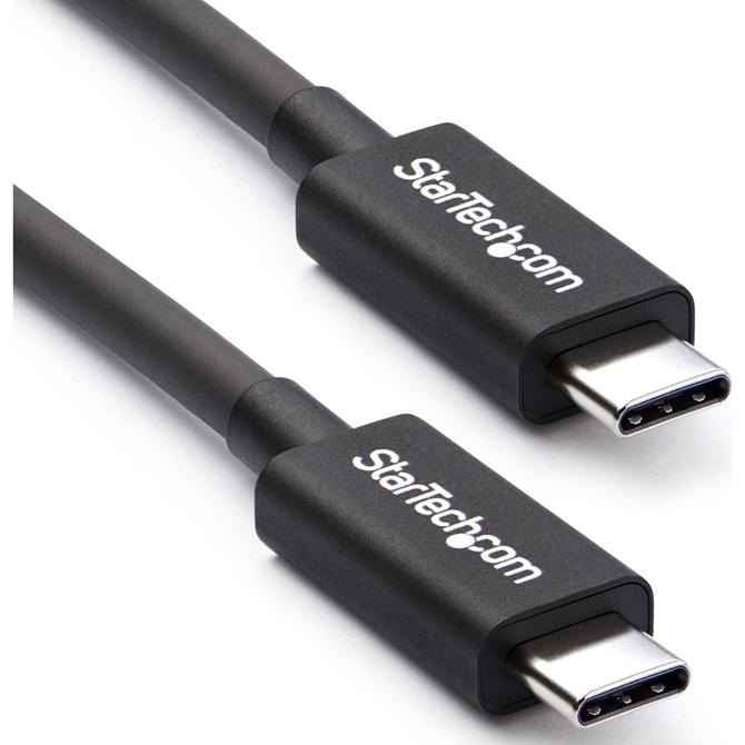 This Thunderbolt 3 (40Gbps) cable lets you connect to any Thunderbolt 3 port (USB-C) to deliver video and data to your Thunderbolt, USB and DisplayPort devices. Plus, the cable can provide power for charging your devices, and you can link up to six Thunderbolt 3 devices as part of a daisy-chained connection. This cable supports data transfer rates of 40Gbps when connected to a Thunderbolt 3 device, so you can transfer photo and video files at four times the speed of a USB 3.1 Gen 2 (10Gbps) cable. For example, you can transfer a 4K movie in seconds. When connected to a USB 3.1 device, the cable supports data transfer rates of 10Gbps. The Thunderbolt 3 cable is fully compatible with all of your USB 3.1 Gen 2 devices and can be used for charging and syncing your mobile devices. You can also connect and power USB-C laptops, such as your MacBook or Chromebook, and USB-C peripherals, such as your portable hard drive and docking station. The cable supports full 4K 60Hz or 5K 60Hz video. The cable also supports DisplayPort 1.2 and is compatible with existing DisplayPort displays. It's perfect for connecting your docking station or laptop to a monitor with astonishing resolution, contrast, and color depth for amazing detail. This Thunderbolt 3 cable delivers up to 100W of power for charging a laptop or powering a display, and 15W for bus-powered devices such as a hard drive enclosure. The cable gives you an easy way to bridge multiple Thunderbolt 3 enabled laptops for peer-to-peer 10GbE networking. It's perfect for setting up small workgroups and sharing peripherals such as printers and storage. You can also connect two Thunderbolt 3 laptops together for PC migrations. The TBLT34MM50CM is backed by a 2-year warranty. More from the Manufacturer