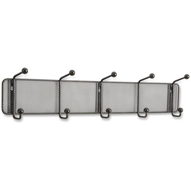 Onyx Mesh Wall Rack will catch everyone's eye with a modern design that has style all wrapped up. The five round, double hooks help protect scarves, hats, coats and other garments from damage. Rack is made of steel mesh with a powder-coat finish.