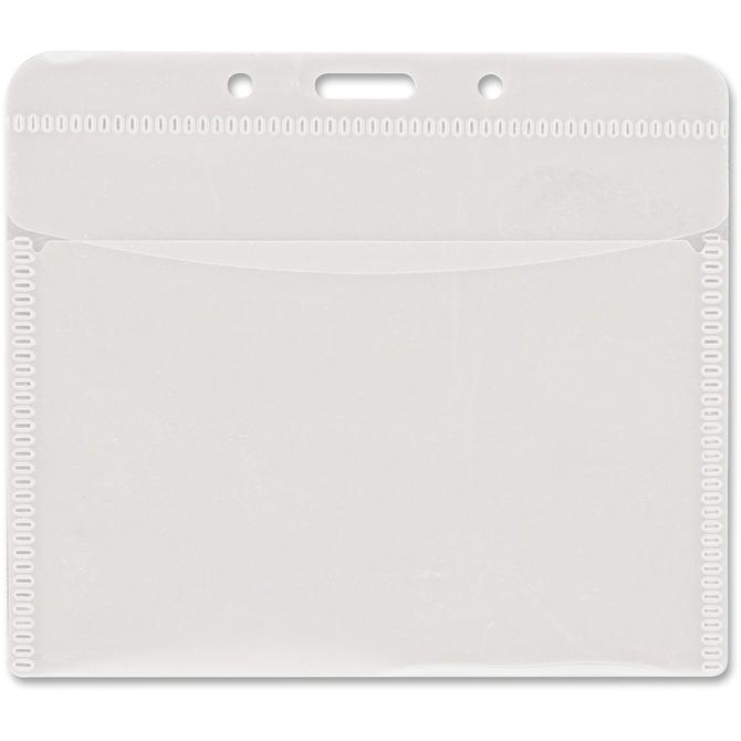 This PVC-Free Horizontal Badge Holder is the perfect way to keep your ID card visible, clean and in good shape. Durable, clear polypropylene holder with a top flap provides protection from daily wear and tear. Die-cut slot hole and two circular punches allow easy attachment to lanyards, split rings, card reels and badge clips (sold separately). Card holder accommodates cards up to 4" x 3" in horizontal orientation.